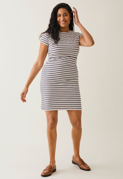 dryžuota suknelė nėščiosioms ir maitinančioms