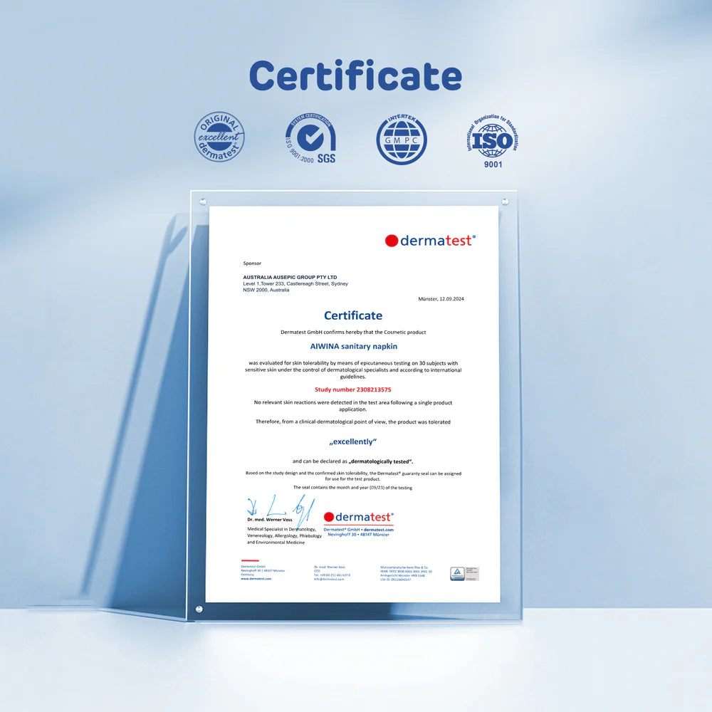 Kiekvienas įklotas yra atskirai supakuotas, skirtas vienkartiniam naudojimui ir patogiam nešiojimuisi su savimi. Jie taip pat yra itin švelnūs ir be jokių priedų – be alkoholio, be dirginančių medžiagų ir be FBAs.