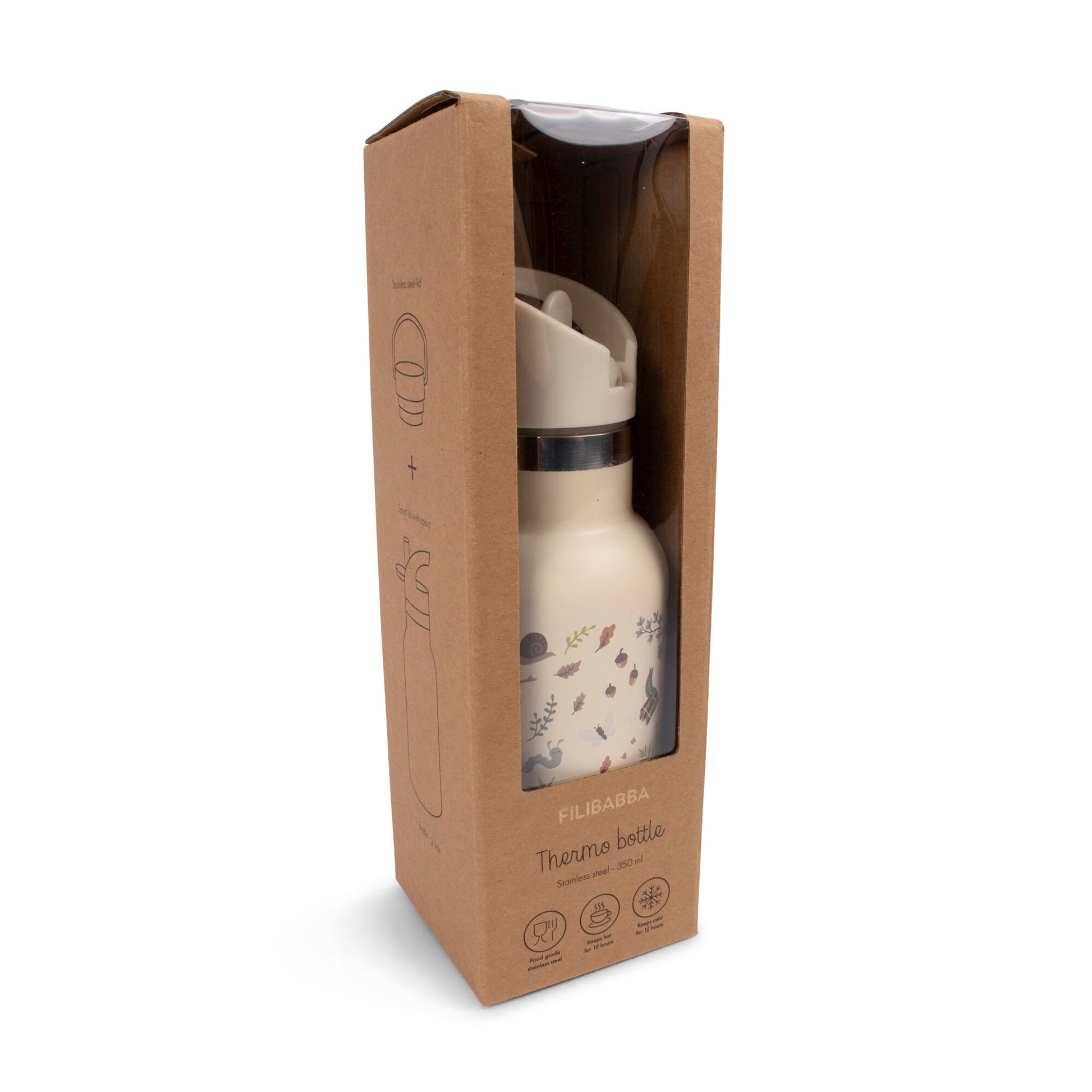 Filibabba nerūdijančio plieno gertuvė su įmantriais miško radiniais turi du dangtelius: klasikinį užsukamąjį dangtelį ir dangtelį su integruotu šiaudeliu. Tokiu būdu butelis prisitaiko prie jūsų pageidavimų – kiekvieną dieną.